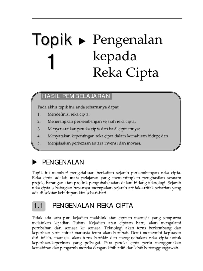 Definisi inovasi remodelling of existing products. Reka cipta menurut definisi kamus dewan ialah barang yang pertama kali dicipta dan merupakan satu ciptaan baru. Arahan pelaksanaan kerja kursus reka cipta 9.1 manual pentaksiran kerja kursus (mpkk) hendaklah dirujuk, digunakan dan dipatuhi oleh guru yang mengajar reka inovasi. Invention) adalah suatu bentuk, komposisi materi, peranti, atau proses yang baru. Reka cipta dan inovasi dalam bidang komunikasi: