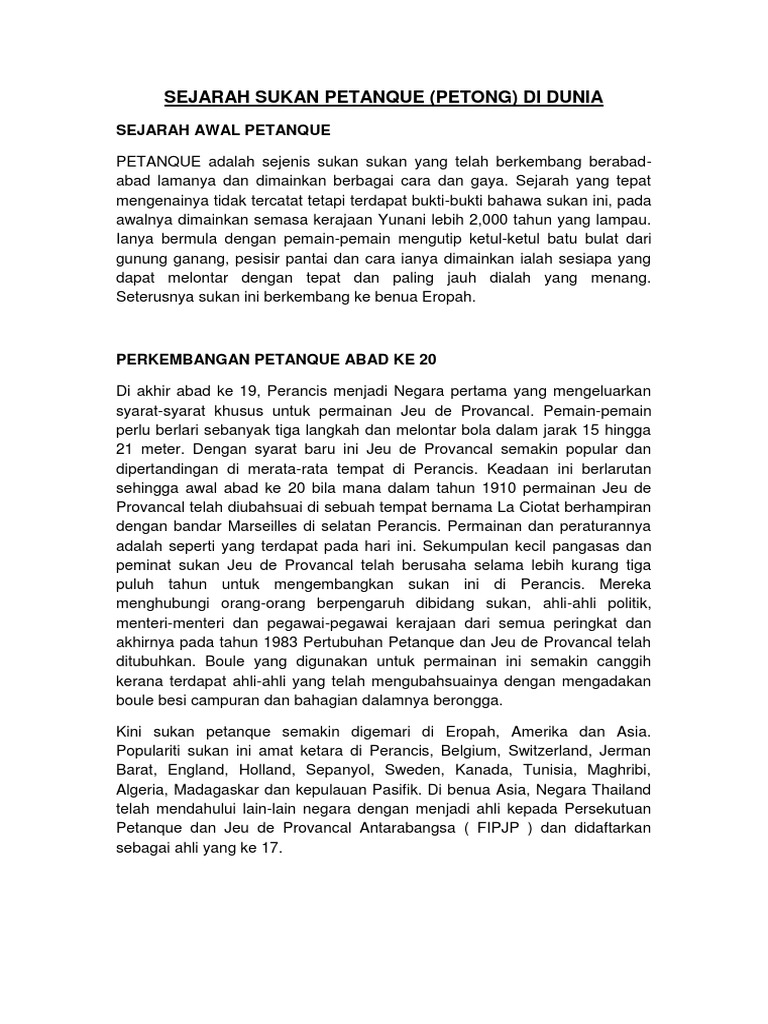 Related : Sejarah Petanque Di Malaysia - The Best Petanque Sport Sejarah Petanque Antarabangsa - We did not find results for:.